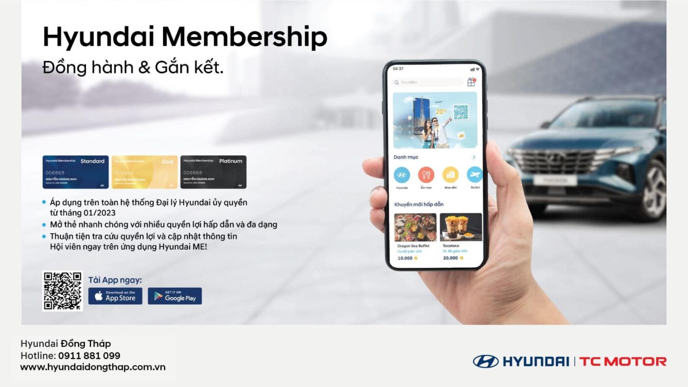 🎯Vui lòng tải ngay ứng dụng Hyundai ME! để đăng ký, theo dõi thông tin Hội viên và tận hưởng những tiện ích dành riêng cho Quý Hội viên.