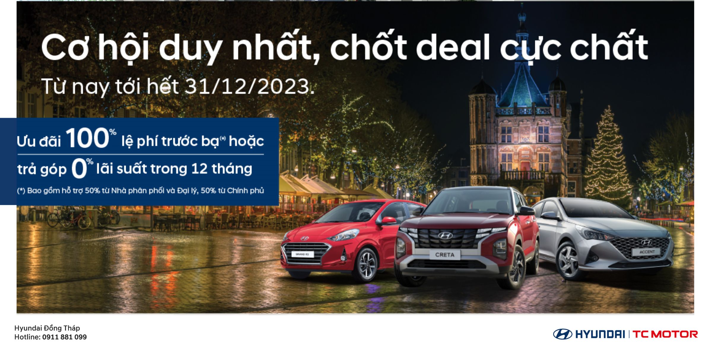 Chỉ còn chưa đầy 1 tháng nữa là bước qua năm 2023. Nhân dịp cuối năm Hyundai Đồng Tháp không thể bỏ qua cơn mưa ưu đãi cực khủng dành tặng cho Quý khách hàng khi mua các dòng xe Hyundai: