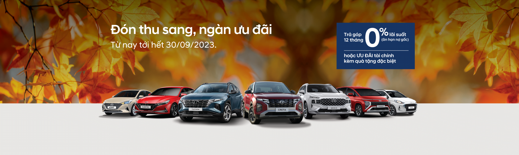 Đặc biệt duy nhất trong tháng 9 này, Hyundai chính thức triển khai chương trình ưu đãi đặc biệt “ĐÓN THU SANG – NGÀN ƯU ĐÃI” gửi đến quý khách hàng.