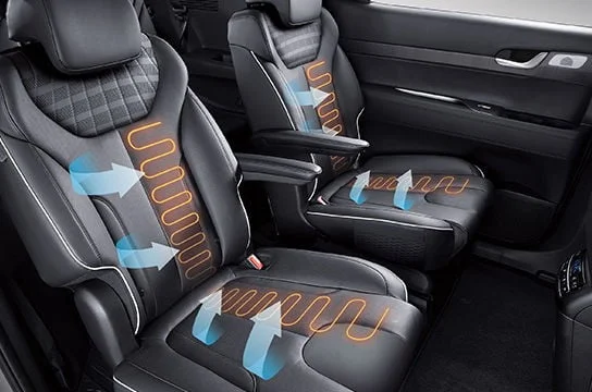 Hyundai Palisade được sở hữu không gian nội thất hiện đại, tinh tế với nhiều vật liệu cao cấp, nhằm mang đến cho chủ nhân không gian thực sự thỏa mái tiện nghi với khả năng điều khiển trực quan. Xe được trang bị vật liệu da kết hợp các chi tiết vật liệu thân thiện môi trường và nhôm định hình, tạo nên sự cao cấp sang trọng, tinh tế