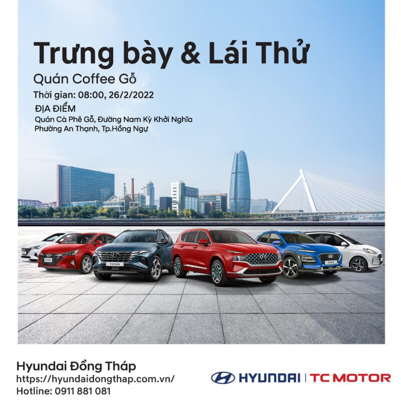Hyundai Đồng Tháp chào tháng 5 với chuỗi Trưng bày và Lái thử “MÙA HÈ SÔI ĐỘNG CÙNG HYUNDAI” đầy hào hứng. Chương trình sẽ được tổ chức tại Huyện Tân Hồng với sự góp mặt của những dòng xe Hyundai cực HOT mùa hè 2022. Địa điểm tổ chức: Quán cà phê Ngọc Hậu.[ …]