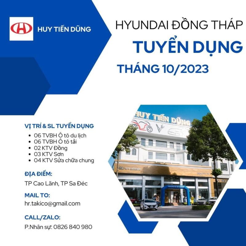 📌HỆ THỐNG Ô TÔ HUY TIẾN DŨNG TUYỂN DỤNG T10/2023 ☘️ Vị trí & địa điểm làm việc: 06 TVBH xe du lịch (Nam,Nữ)- TP Cao Lãnh, TP Sa Đéc 06 TVBH xe tải (Nam) – TP Sa Đéc. TP Cao Lãnh 02 Kỹ thuật viên đồng (Nam)- TP Sa Đéc 03 Kỹ thuật viên[ …]